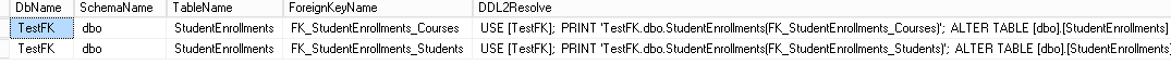 DbName VARCHAR(256), SchemaName VARCHAR(256), TableName VARCHAR(256), ForeignKeyName VARCHAR(256), DDL2Resolve VARCHAR(MAX) – computed column |