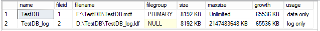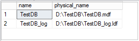 Use TestDB Go SELECT name,physical_name FROM sys.database_files |