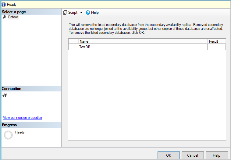 Step 2: In this step, remove the database out from the SQL Server Always On Availability Group from the secondary replica. Expand the High Availability. Right-click on the database and Remove Secondary Database.