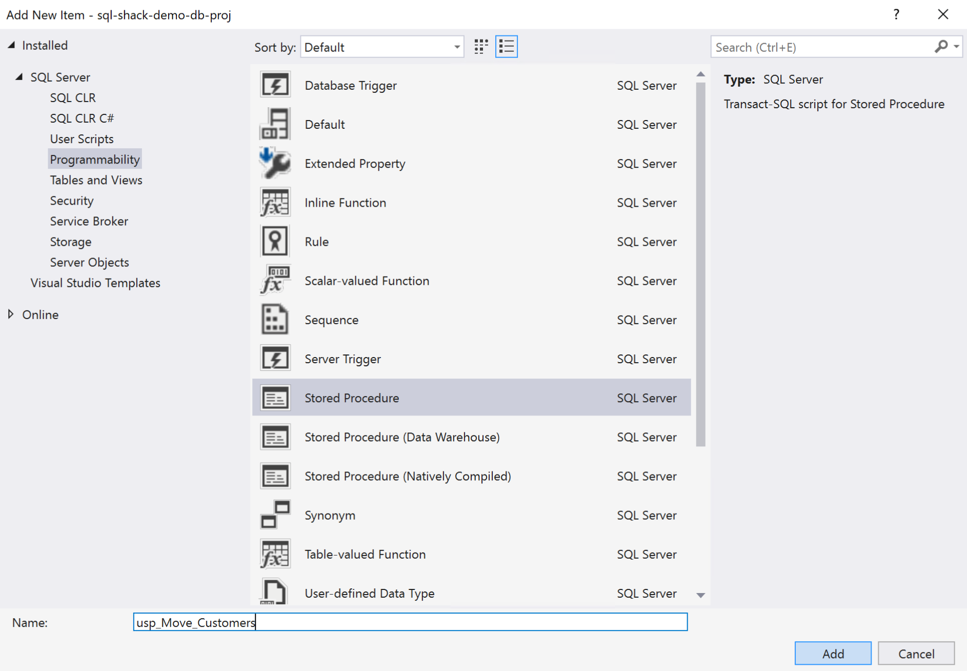 The goal is to create a stored procedure using the data-tier application such that we can dynamically assign the name of the source database while deploying the database. Let us now go ahead and create the stored procedure.