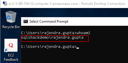 - We have created an AWS EC2 server with Windows operating system. We configured this EC2 with the active directory [sqlshackdemo.com] and logged in with the default [sqlshackdemo\admin] account