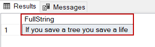 SELECT CONCAT('If' , ' you' , ' save', ' a', ' tree' , ' you' , ' save' ,' a' ,' life') AS 'FullString' |
