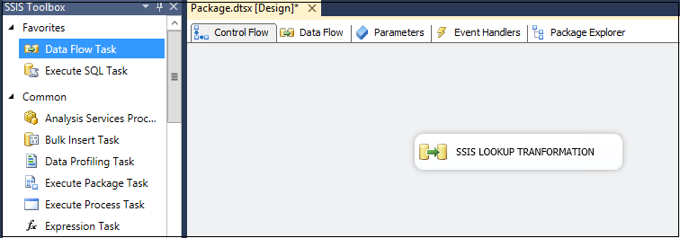 Right-click on Data Flow Task and rename it to SSIS LOOKUP TRANSFORMATION