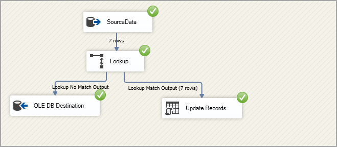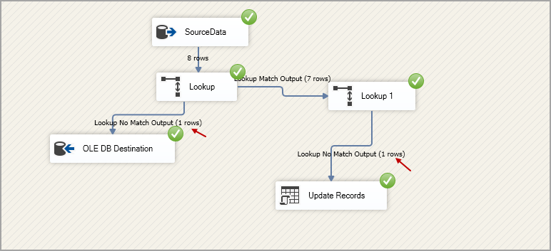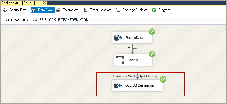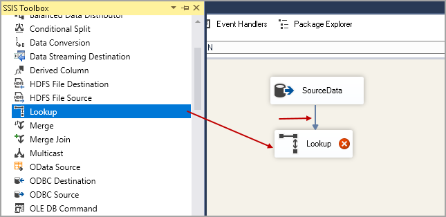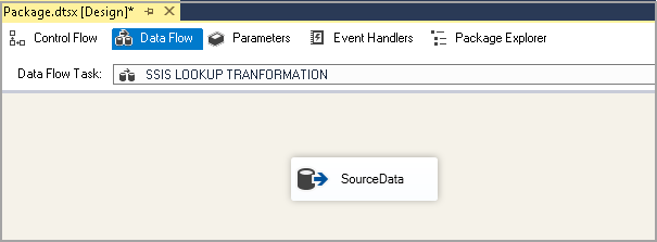 Now, add a Lookup task in the control flow and join the SourceData task with this Lookup task using a green arrow.