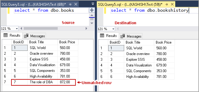 At this point, we have BookID 7 in the source table, but it is not available in the destination table.