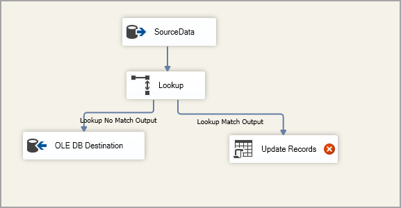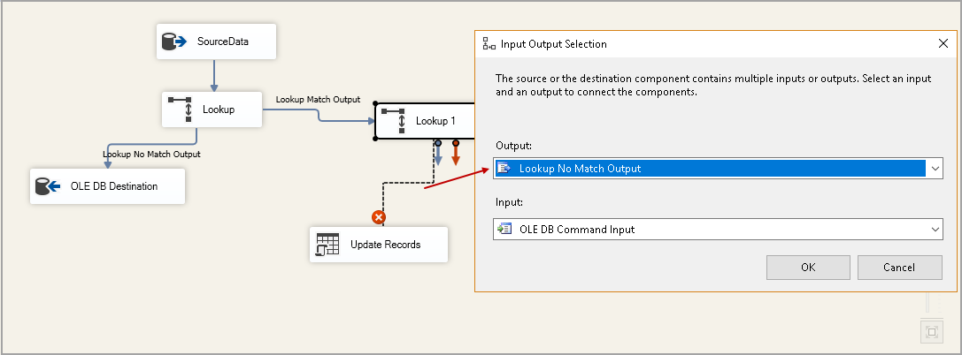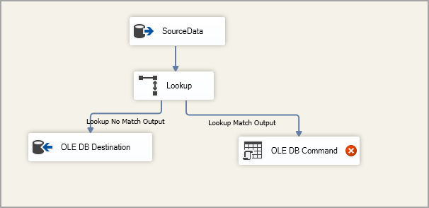 To add an update task, drag an OLE DB Command task and join the Lookup transformation in SSIS for Lookup Match Output.