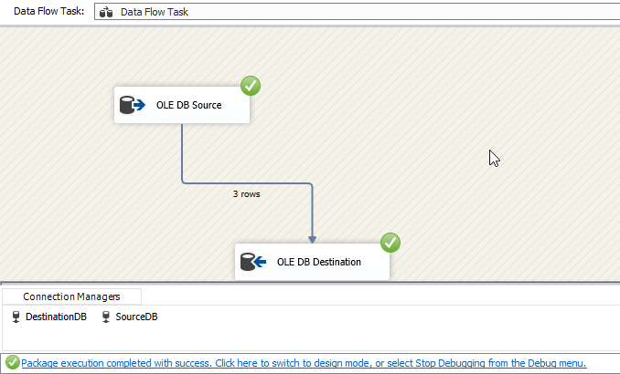 After ensuring that the source metadata is updated in the OLE DB source component, let us try to re-execute the package again.