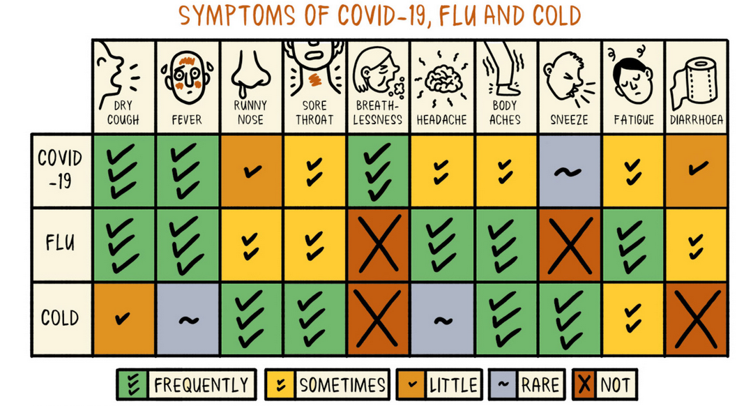 Before we start, let have a quick comparison between COVID-19, FLU, and Cold using the following useful graphics. Image reference: DeZeen