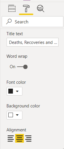 - Title alignment: Set the tile alignment to left, center or right. Here, we select the center alignment. By default, it shows a title depending upon the selected data fields. You can also modify the default title as per your requirement:
