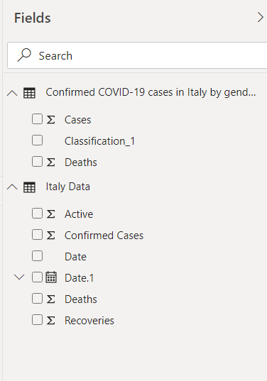 Once we save the transformations, it shows an additional data set in the Power BI Report fields section, as shown below.