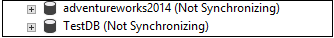 In the Availability databases, we can see a warning message in front of the adventureworks2014 database.