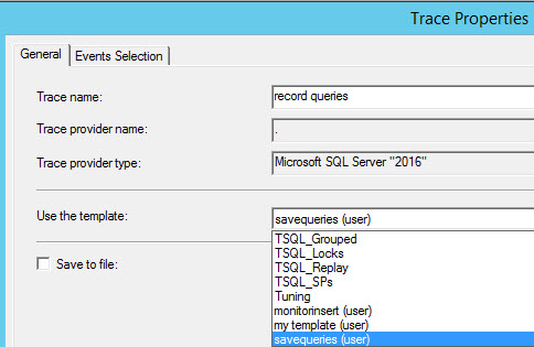 We will create a new template to store the T-SQL Statements completed. Go to File>Trace>New Trace: