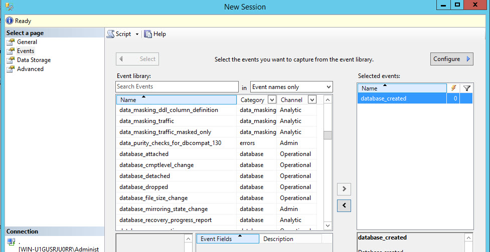 Specify a session name and check the Start the event session immediately after session created and Watch live data on screen as it is captured option:
