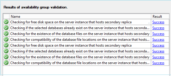 If you have any issues in the secondary replica, you get an Error message. You should fix it and rerun validations.