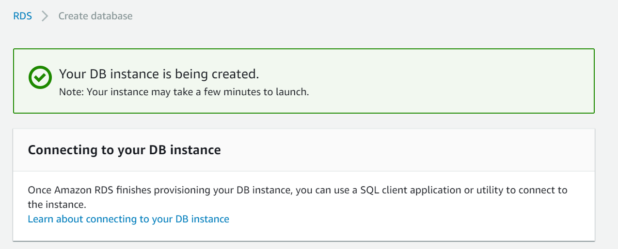 Enable deletion protection. If you enable this option, you cannot delete the database instance. Click on Create Database. Your database instance will be created in few minutes.