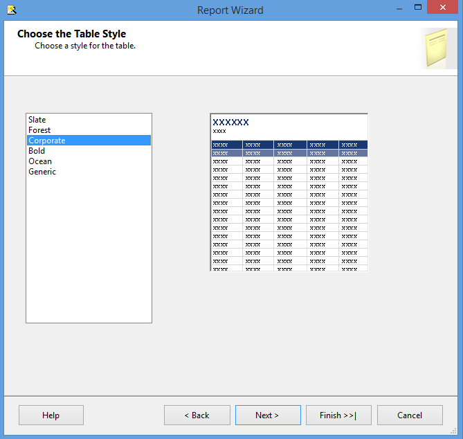 Pick a report name and, finally, click Finish.