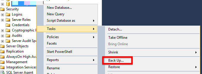 Save the file in your server, and create the Credential. One of the ways to perform this, is proceed as you would perform a backup, as follows: