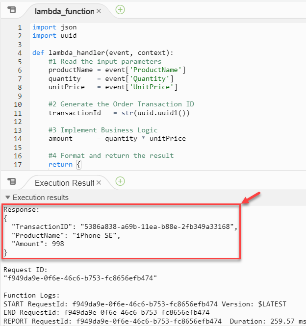 If the execution is successful, you will get a successful return with the calculations completed as follows. As you can see in the figure below, the function returns the following items.