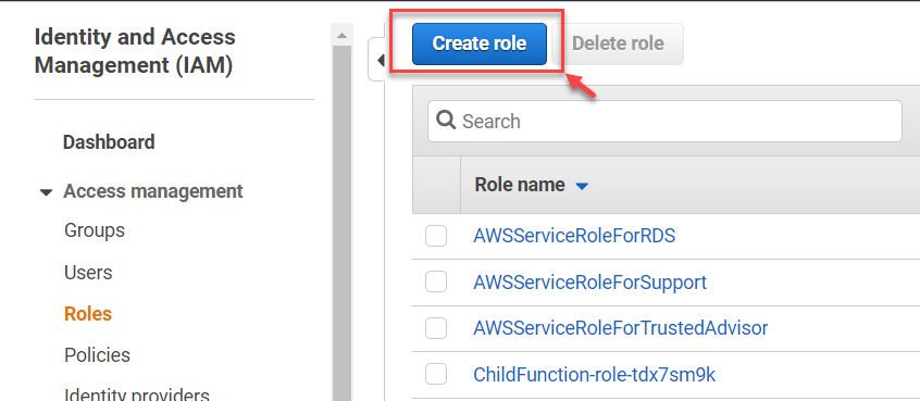 In order to allow the ParentFunction to call the ChildFunction, we need to provide the ParentFunction with specific rights to call another lambda function. This can be done by adding specific policies to a role and then assign that role to the lambda function.