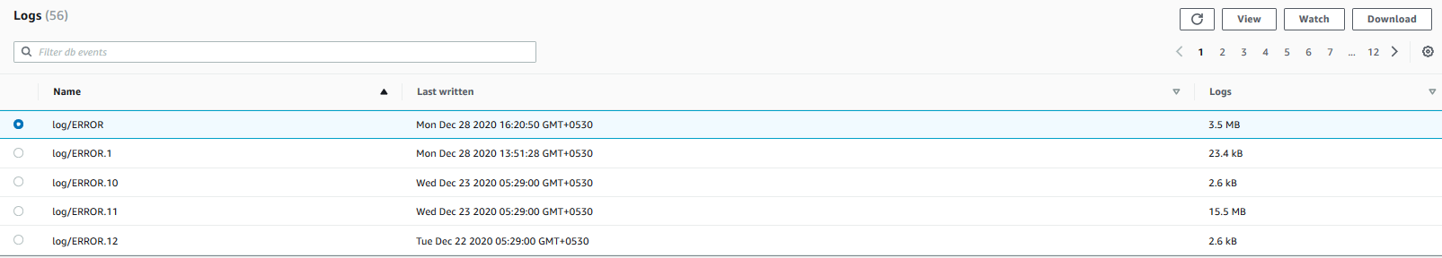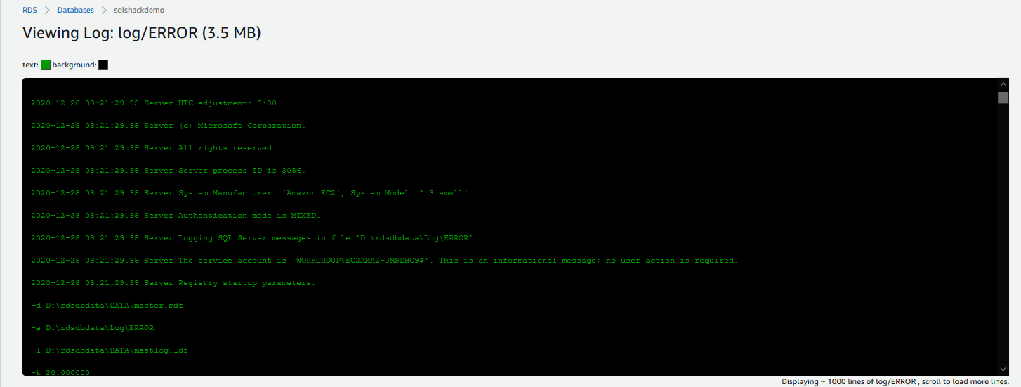 To view the deadlock information, click on the RDS instance in the AWS Web Console and navigate to Logs & events. It displays a list of SQL Server error logs.