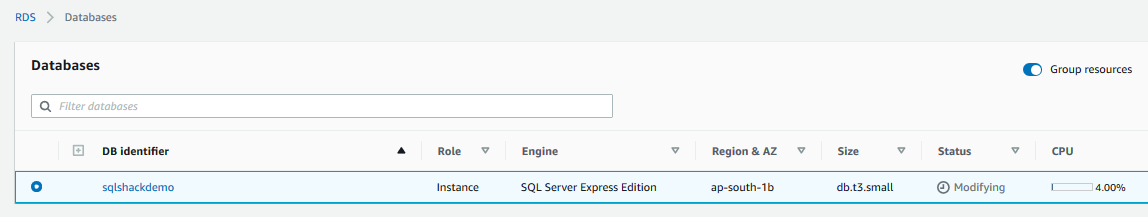 In this article, we use an RDS instance [SQLShackDemo] version 15.0.4043, as shown below.