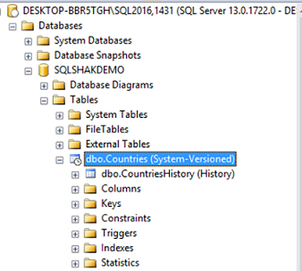 Now, after we executed the above script, if we opened SQL Server management studio we will find the new table as system-versioned, and inside this table you will find the corresponding historical table for it.