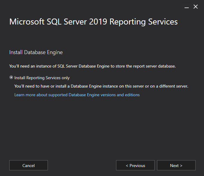 On the next page, it shows that it installs the reporting services only. It does not install the SQL database engine for you that is required to store SSRS databases. You should install SQL Services on it or a separate instance. As highlighted earlier, we use the SQLNode1\INST1 for the SSRS databases.