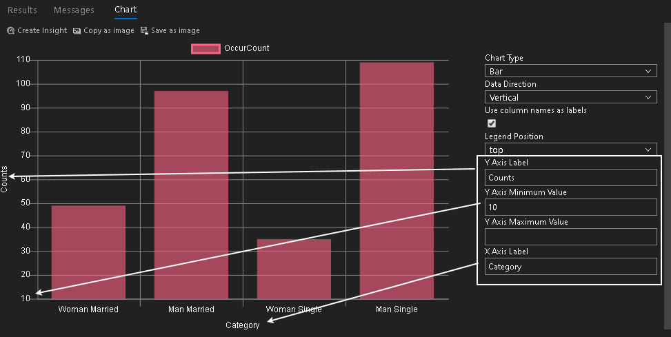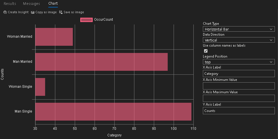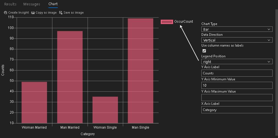 In the results format, click on Chart, and you immediately get the following bar chart with default properties.