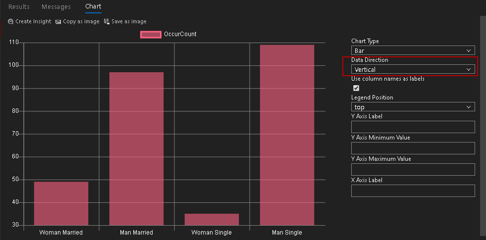 Data Direction: In this column, we can choose horizontal(default) or vertical data direction. In the above image, we do not get the correct bar chart because it shows all columns horizontally