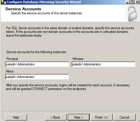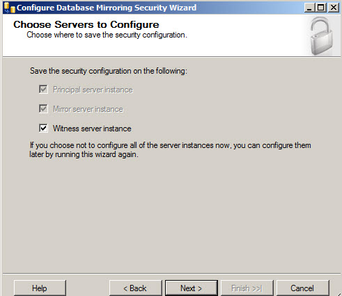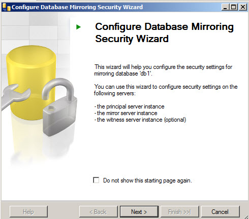 The Configure Database Mirroring Security Wizard will be displayed. Press next.