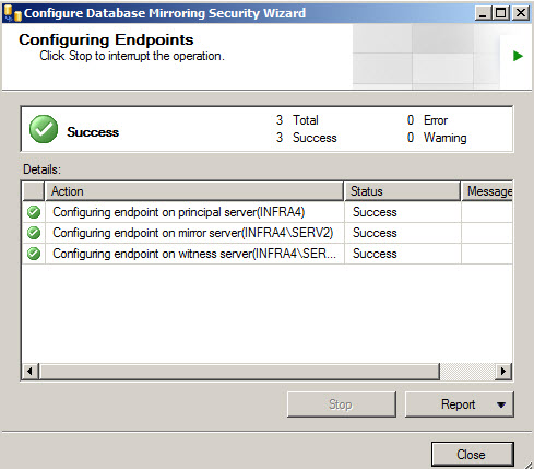 You can also, check the mirror status using the sys.database_mirroring_endpoints view: