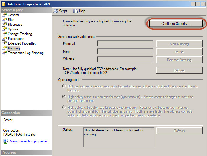 Figure 1. The Mirror TaskPress the Configure Security button.