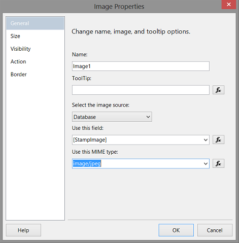 Back in the “General” tab, we set the “Use this field” to “StampImage” and the “Use this MIME type to “Image/jpeg” (see above).