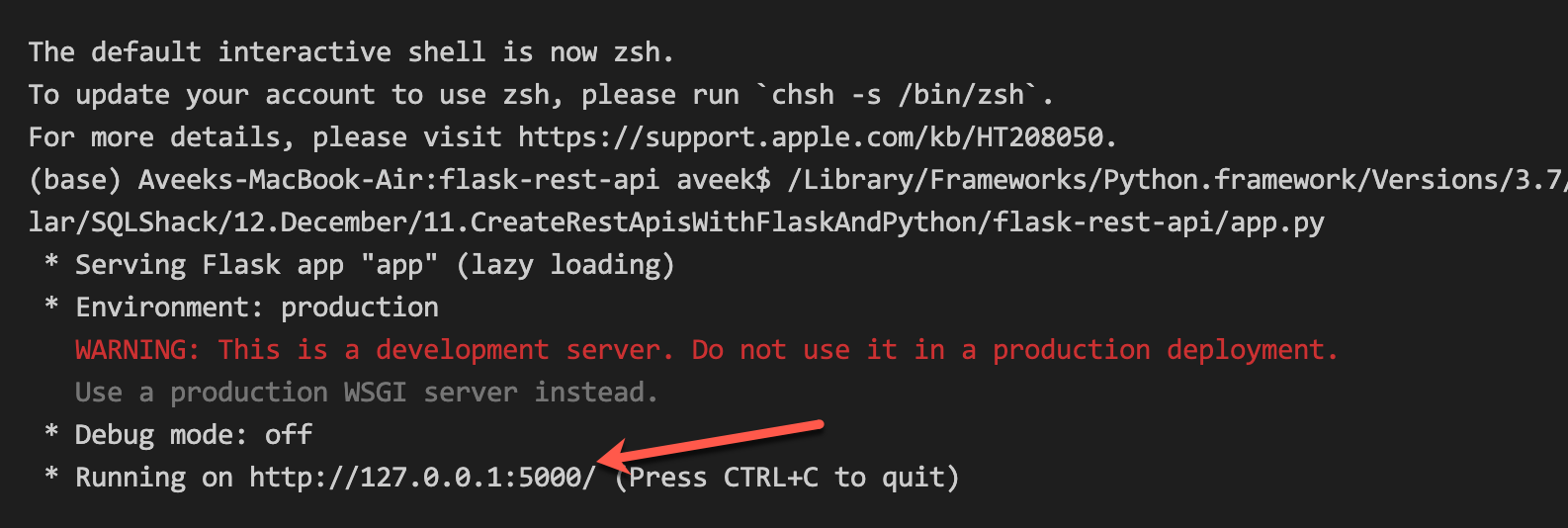This will run the web application on the development server. You can see the URL endpoint on the console as follows.