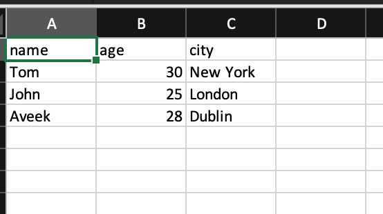 Now that we have some idea about what an API is and how it works, let us try to get our hands dirty by creating one using Flask and then test it using Postman. For the sake of simplicity, we are going to read and write data to a CSV file that contains information about users. The structure of the CSV file is as below.