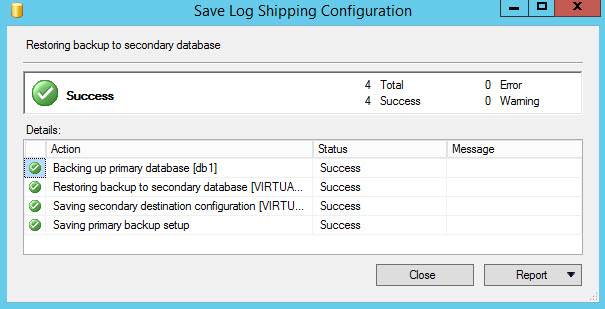 Figure 9. The success message.If everything is OK, you will be able to see a Standby / read only database on the secondary server.