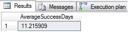 SELECT AVG(CAST(DATEDIFF(DAY, CTE_StartDates.OrderDate, CTE_EndDates.OrderDate) + 1 AS DECIMAL)) AS AverageSuccessDays FROM CTE_StartDates INNER JOIN CTE_EndDates ON CTE_StartDates.rownum = CTE_EndDates.rownum |