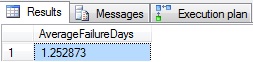 CTE_ISLANDS AS ( SELECT CTE_StartDates.OrderDate AS StartDate, CTE_EndDates.OrderDate AS EndDate, ROW_NUMBER() OVER (ORDER BY CTE_StartDates.OrderDate ASC) AS rownum FROM CTE_StartDates INNER JOIN CTE_EndDates ON CTE_StartDates.rownum = CTE_EndDates.rownum) SELECT AVG(CAST(DATEDIFF(DAY, LeadingRow.EndDate, LaggingRow.StartDate) - 1 AS DECIMAL)) AS AverageFailureDays FROM CTE_ISLANDS LeadingRow INNER JOIN CTE_ISLANDS LaggingRow ON LaggingRow.rownum = LeadingRow.rownum + 1 |