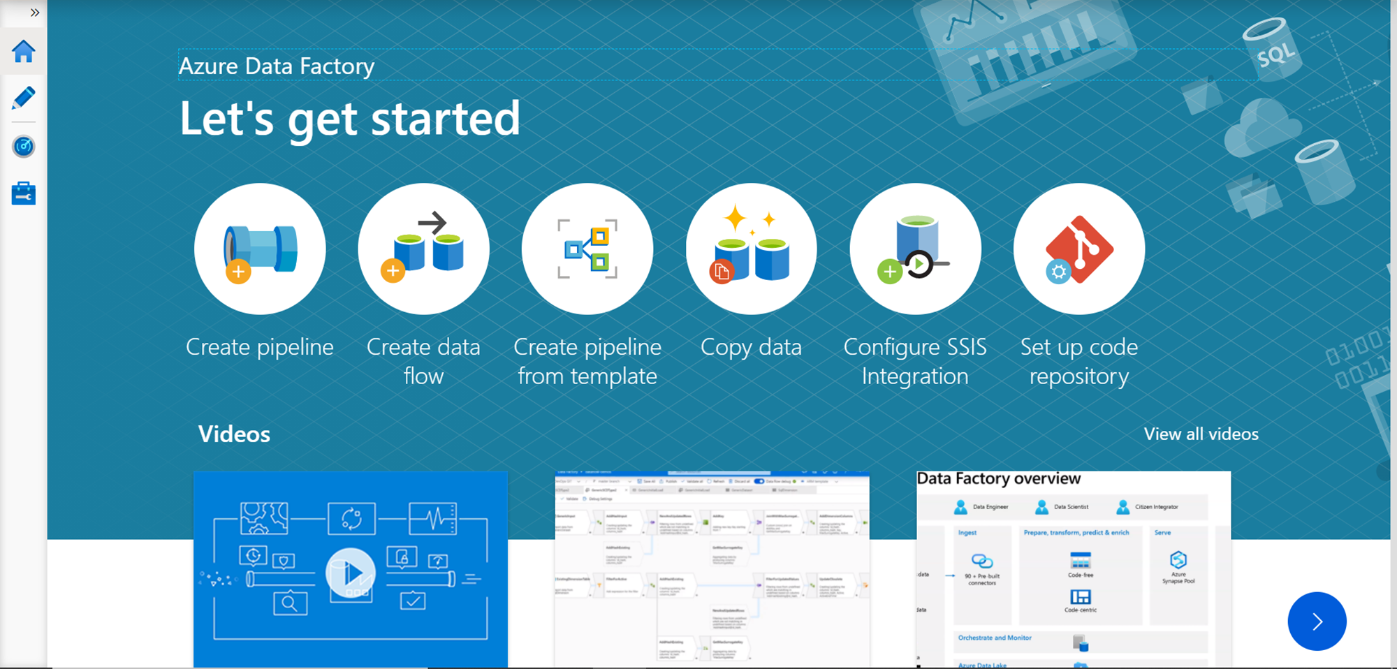 It is assumed that one is already on the Azure Data Factory portal as shown below. We would be using the copy tool to demonstrate how to perform the data migration for a simple table hosted in Azure SQL Database.