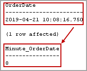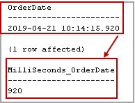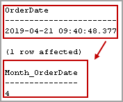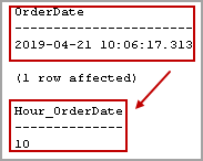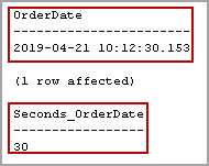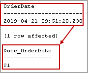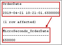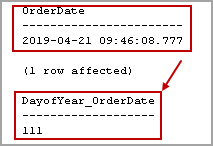 DECLARE @OrderDate TIME= '00:00:00.000'; SELECT DATEPART(year, @OrderDate) AS [Year], DATEPART(month, @OrderDate) AS [Month], DATEPART(day, @OrderDate) AS [Day], DATEPART(dayofyear, @OrderDate) AS [Dayofyear], DATEPART(weekday, @OrderDate) AS [WeekDay]; |