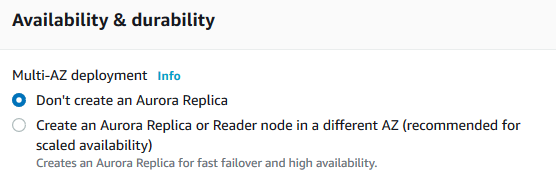 As highlighted earlier, Aurora supports up to 15 replicas in the separate availability zones. Currently, we do not configure a read replica. Therefore, it creates the aurora cluster with a primary instance and without any read replicas.