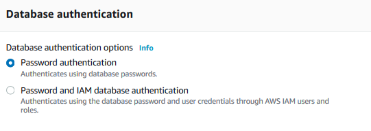 For the database authentication, we can use Password authentication or Password and AWS IAM database authentication. In the IAM authentication, you can allow your IAM users to connect with the Aurora instance for your database queries.
