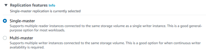 In this article, we go with the Single Master configuration for the Aurora cluster.