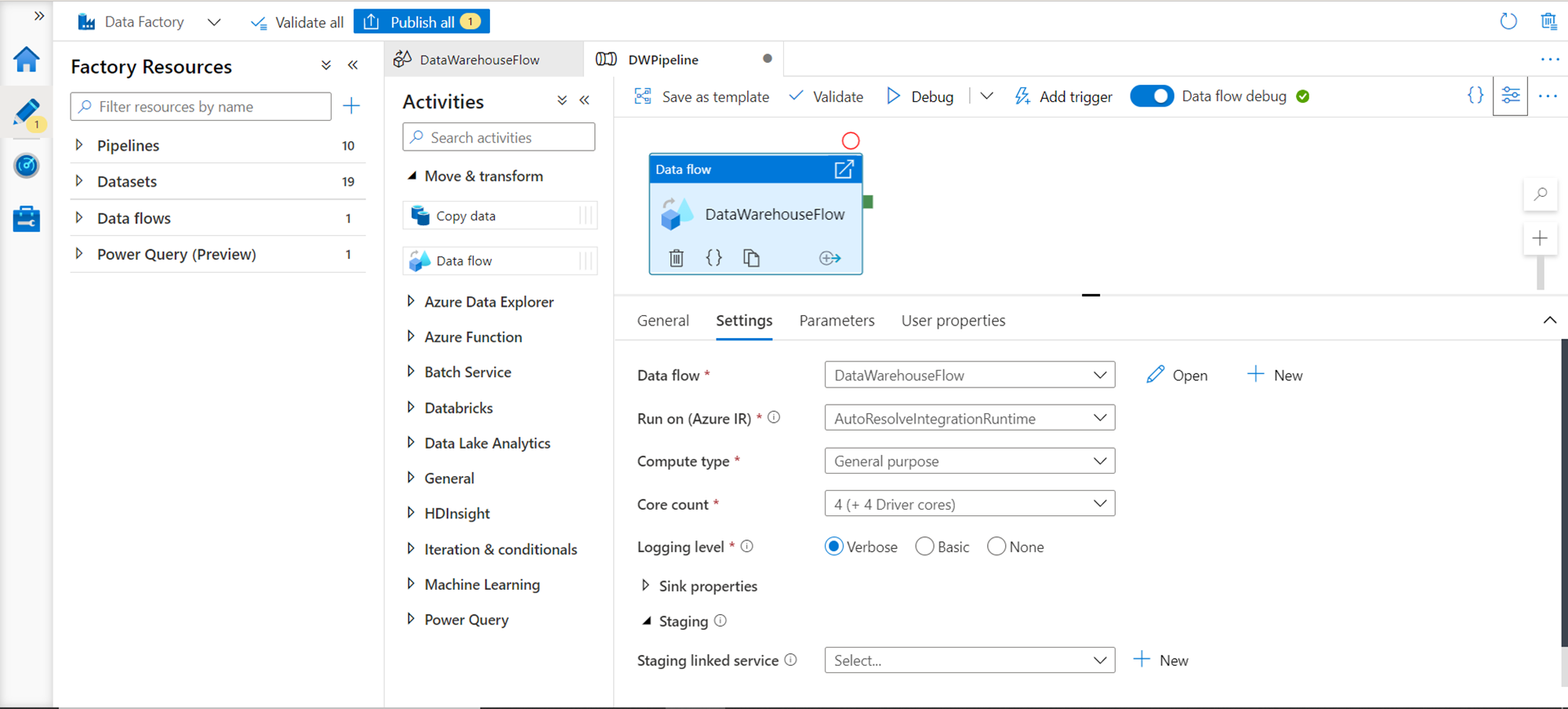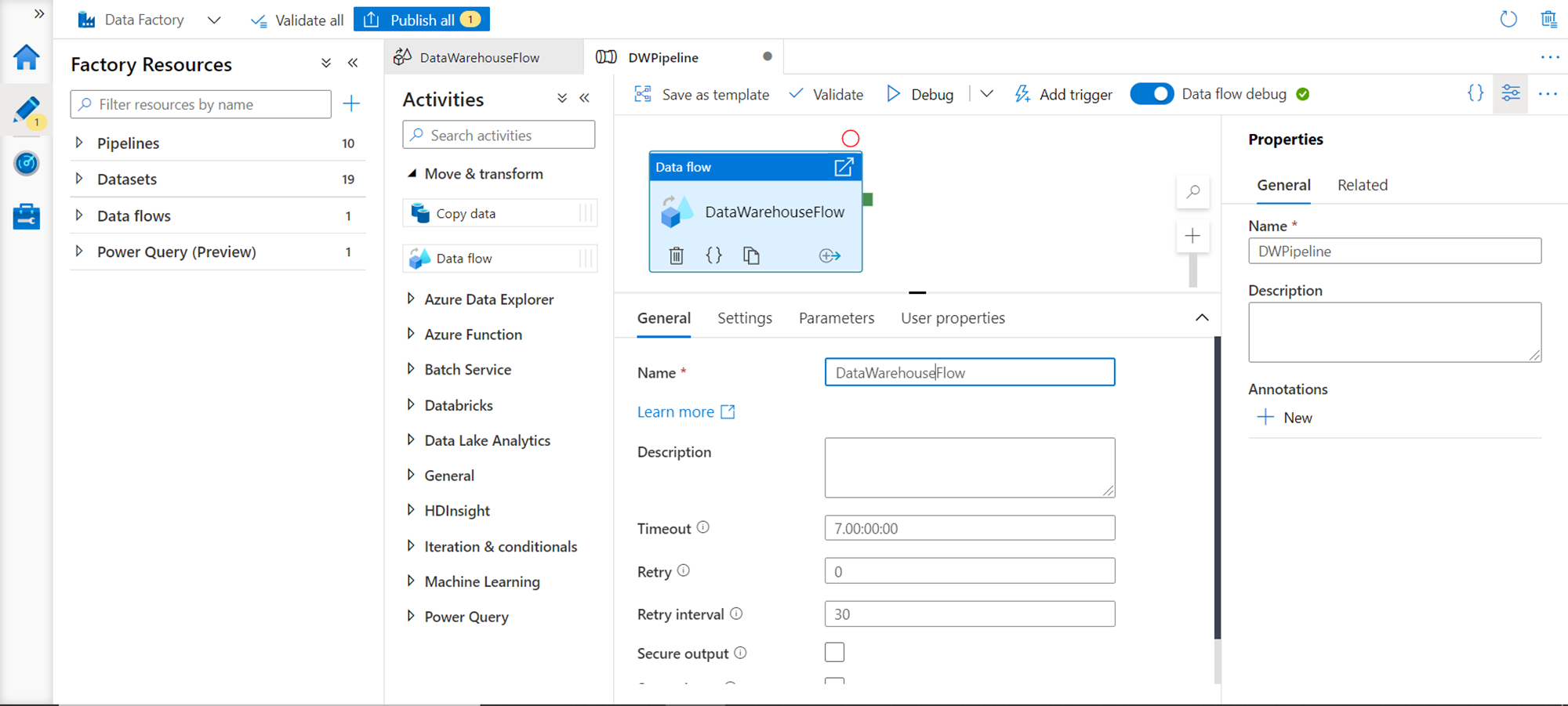 In this way, we can create a data flow and data pipeline that can be used as a template to move and transform data from source systems to data warehouses on the Azure cloud.