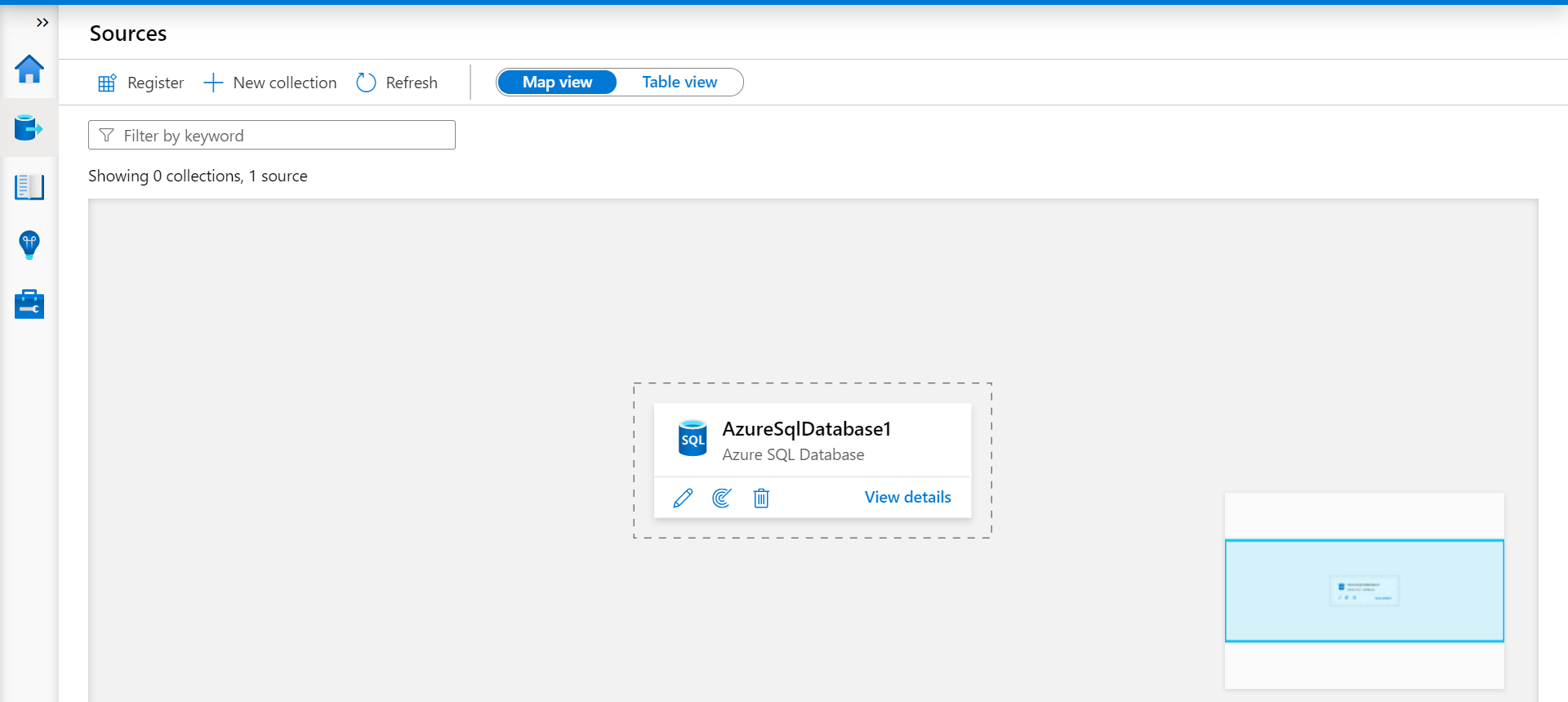 Once the data source gets registered, it would look as shown below. This is the data map view in which we can view all the data sources as well as organize them categorically as required.