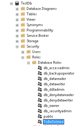 Using SQL Server Management Studio (SSMS), we can drop a database role following these steps: