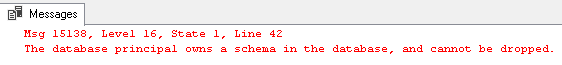 - If the database principal is a user, check that it’s not set as the execution context for one or more procedures, functions (etc.)