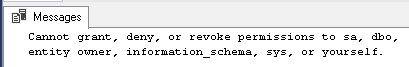 Another test will consist in setting the value of @PreserveAssignedPermissions parameter back to its default value (1) and running the stored procedure. This should actually work but, in cases where the database principal is a role, the permissions assigned to this role has not been transmitted to its members (before the execution of the stored procedure). This test is performed running following procedure call: