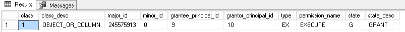 grant execute on OBJECT::[ApplicationSchema1].[sp2Execute] to dbo WITH GRANT OPTION ; |