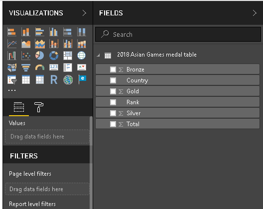 We can see dataset now to prepare visuals as required. Our sample dataset contains a list of countries, and their medals tally (Gold, bronze or silver).